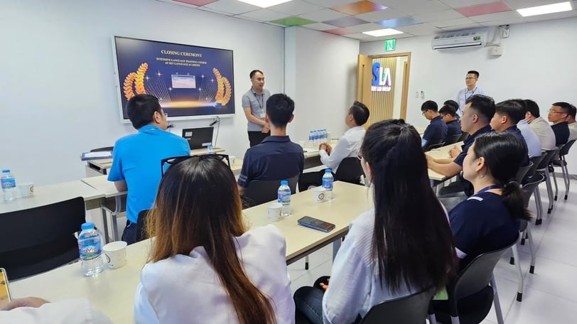 Buổi bế giảng lớp tiếng Hàn sơ cấp 1 cho cán bộ cấp cao của Samsung SEV và trường Cao đẳng Công nghệ Bắc Hà đã kết thúc thành công. Sự hợp tác mạnh mẽ giữa hai bên đã mang lại những kết quả xuất sắc và tạo nên môi trường học tập thú vị. Chúc mừng tất cả các Sinh viên đã hoàn thành khóa học và hy vọng các bạn sẽ tiếp tục phát triển vững mạnh trong tương lai.
